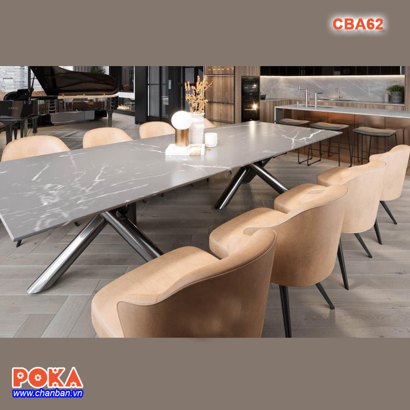 Chân bàn ăn CBA62 có thể kết hợp với nhiểu loại mặt bàn khác nhau như gỗ nguyên tấm, mặt đá công nghiệp...Không chỉ được sử dụng làm bàn ăn gia đình mà còn sử dụng như bàn họp. Khi kết hợp với mặt đá sẽ trở thành một chiếc bàn ăn chân sắt cao cấp, sang trọng.