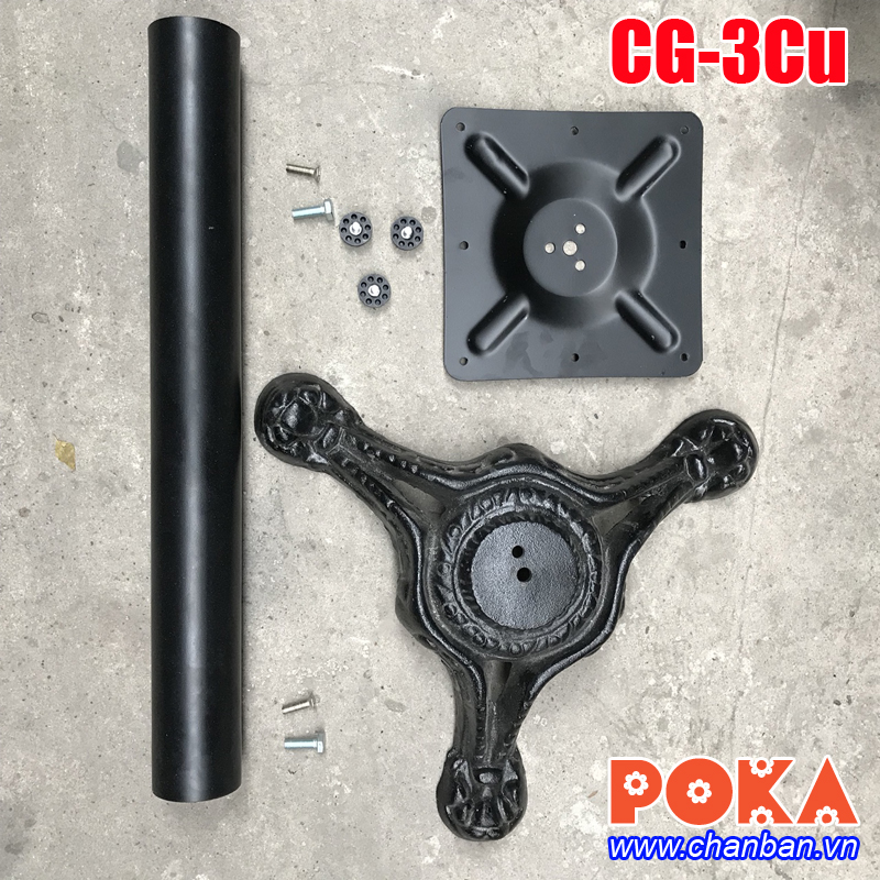 Chân bàn gang đúc 3 nhánh là loại chân trụ giả cổ theo phong cách tân cổ điển được dùng làm Bàn cafe, nhà hàng, khách sạn, bàn ghế quán ăn nhanh fastfood, quán trà sữa, trà chanh, cửa hàng showroom, phòng tiếp khách.