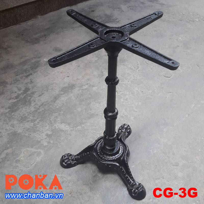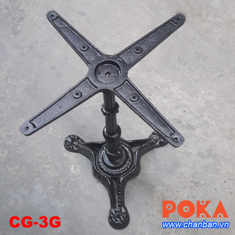 Chân bàn gang đúc CG-3G là loại Chân gang đúc 3 nhánh toàn bộ từ phần mặt bích bên trên, trụ giữa đến phần đế gang bên dưới với những đường nét và họa tiết hết sức tinh tế.