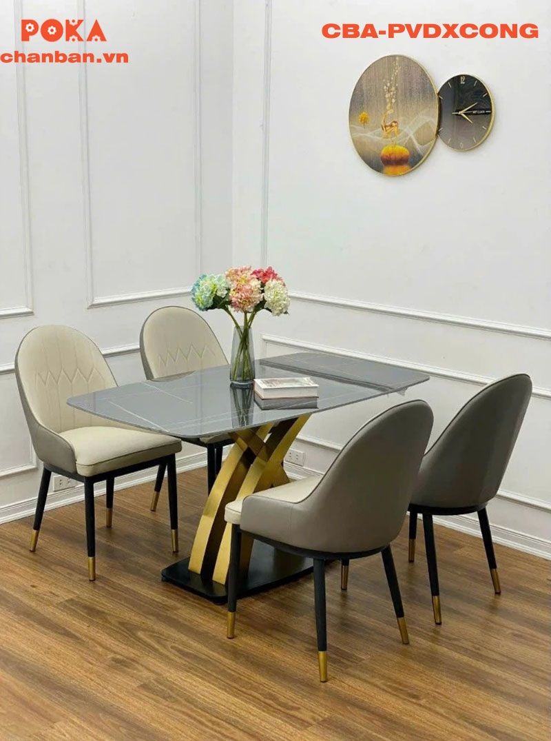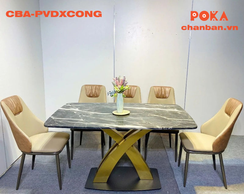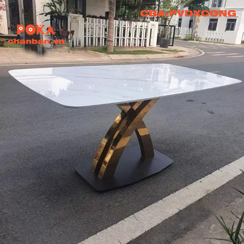 Chân bàn inox mạ chữ X cong CBA-PVDXCONG không chỉ có thiết kế đẹp mắt mà còn rất tiện dụng. Chân bàn chắc chắn, chịu lực tốt, phù hợp để sử dụng trong nhiều không gian khác nhau như phòng ăn gia đình, nhà hàng, khách sạn, quán cà phê…