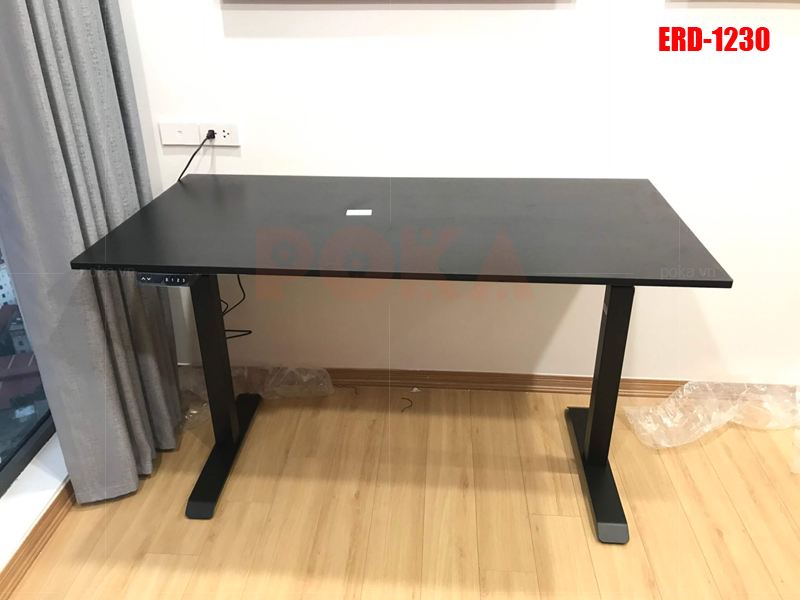 Chân bàn nâng hạ ergonomic ERD-1230 màu đen kết hợp với mặt bàn màu đen.
