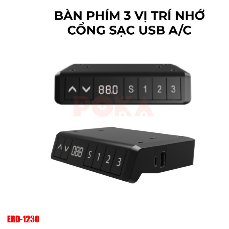 - Phím bấm cơ, 3 vị trí nhớ. Cổng sạc USB A/C