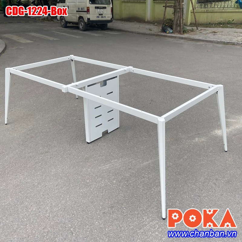 - Chân bàn: bằng thép tấm 1.5mm tạo hình ngũ giác 3D, chân giữa có vách điện