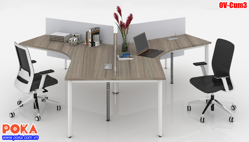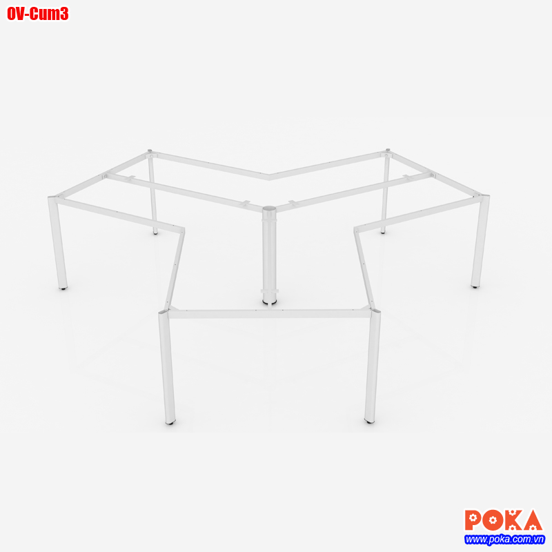 Nhằm khắc phục những nhược điểm trên POKA giới thiệu một mẫu chân bàn văn phòng Oval OV-Cum3. Đây là mẫu khung bàn văn phòng có cấu tạo tháo rời, lắp ghép linh hoạt, có thể tháo rời bằng tay một cách dễ dàng. Tiết kiệm rất nhiều thời gian, công sức mỗi khi cần thay đổi văn phòng, không gian làm việc. Khung chân bàn OV-Cum3 dùng cho bàn làm việc 3 chỗ ngồi cụm nhau, tạo sự tập trung tăng hiệu quả công việc.