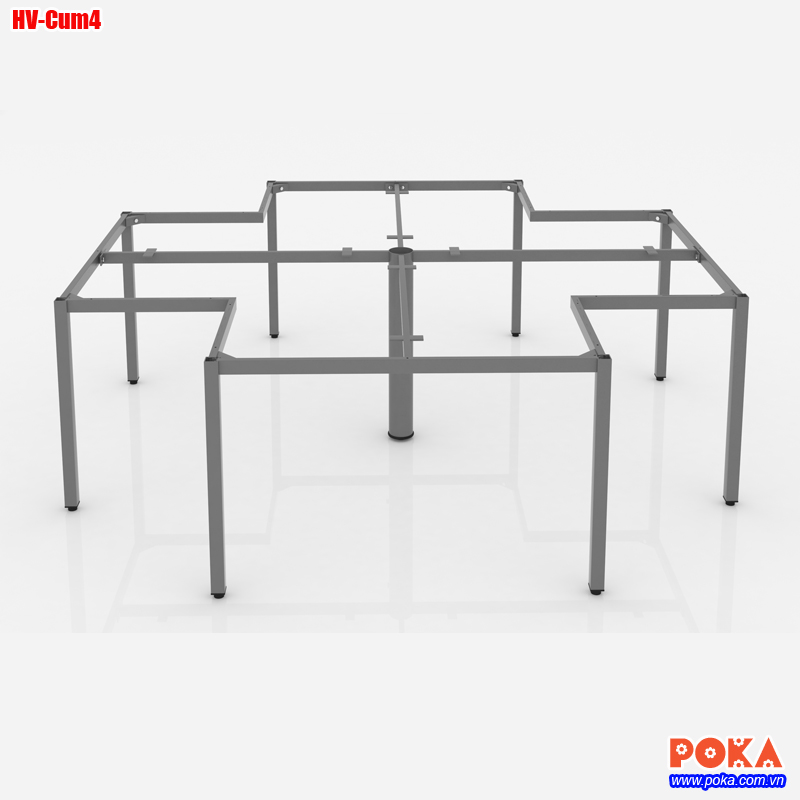 Nhằm khắc phục những nhược điểm trên POKA giới thiệu một mẫu chân bàn văn phòng sắt hộp 40x40 HV-Cum4. Đây là mẫu khung bàn văn phòng có cấu tạo tháo rời, lắp ghép linh hoạt, có thể tháo rời bằng tay một cách dễ dàng. Tiết kiệm rất nhiều thời gian, công sức mỗi khi cần thay đổi văn phòng, không gian làm việc. Khung chân bàn HV-Cum4 dùng cho bàn nhân viên cụm 4, bàn làm việc 4 chỗ ngồi 4 góc.