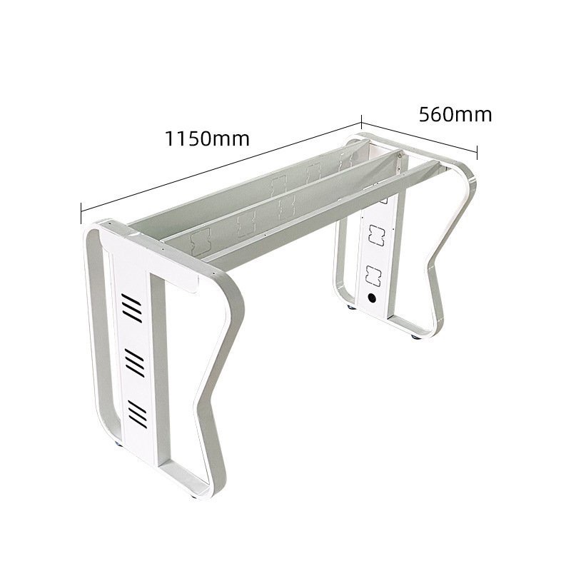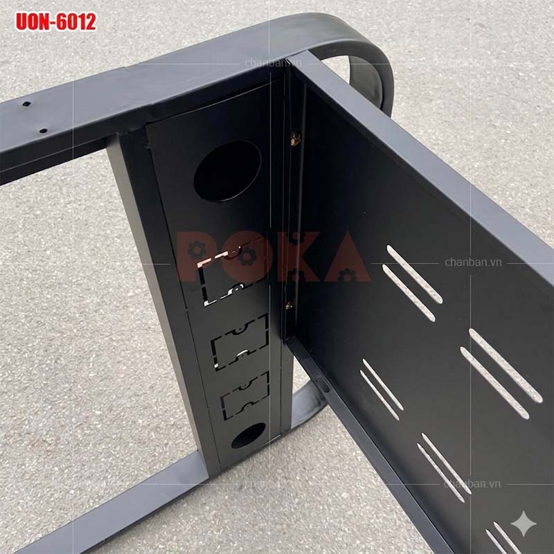 Chân bàn nhập khẩu kích thước 600x1200mm được thiết kế một cách mềm mại. Tất cả các bộ phận được liên kết bằng bulong rất thuận tiện tháp lắp, di dời vận chuyển. Đây là dạng chân bàn nhân viên có yếm treo vừa kín đáo nhưng vẫn giữ được sự thoáng không bí bách. Yếm được thiết kế thông minh vừa làm yếm che đồng thời là thanh giằng để đỡ mặt bàn. Sự kết hợp đó rất hài hòa nhưng vẫn đảm bảo kết cấu chắc chắn cho Bàn.