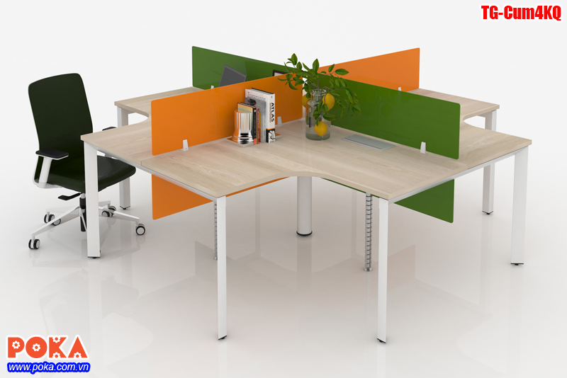 Nhằm khắc phục những nhược điểm trên POKA giới thiệu một mẫu chân bàn văn phòng ống tam giác TG-Cum4KQ. Đây là mẫu khung bàn văn phòng có cấu tạo tháo rời, lắp ghép linh hoạt, liên kết bằng ngàm có thể tháo rời bằng tay một cách dễ dàng. Tiết kiệm rất nhiều thời gian, công sức mỗi khi cần thay đổi văn phòng, không gian làm việc. Khung chân bàn TG-Cum4KQ dùng cho bàn nhân viên cụm 4 góc, bàn làm việc 4 chỗ ngồi tạo sự tập trung, tăng hiệu quả công việc.