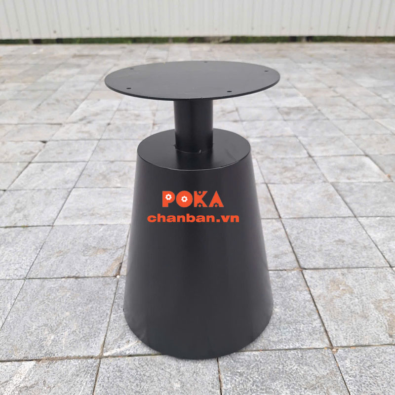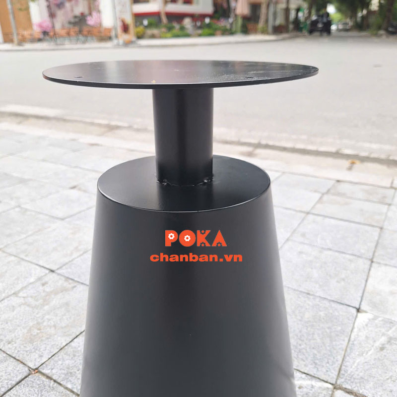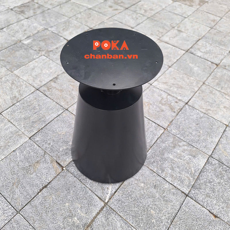 Phần chân bàn thép sơn tĩnh điện được tạo hình nón độc đáo, không chỉ đảm bảo sự chắc chắn mà còn góp phần tạo điểm nhấn nổi bật trong không gian. Thiết kế này giúp bàn trông thanh thoát, nghệ thuật mà không chiếm nhiều diện tích.