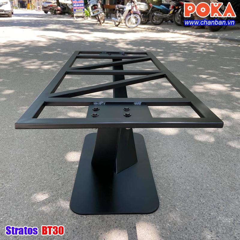 - Chân bàn: đế chân bàn trà Stratos BT30 bằng thép tấm dày 6mm, phần thân thép tấm dày 2,2mm cắt chấn đa giác tạo điểm nhấn thu hút ánh nhìn.