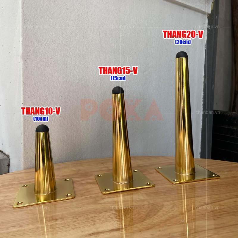 Chân ghế sofa côn thẳng màu vàng có 3 kích thước: 10cm ; 15cm ; 20cm
