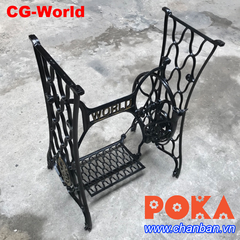 Chân bàn máy khâu World này với các đường cong uốn lượn mỹ thuật, hoạ tiết mắt võng đã làm nên nét đặc trưng riêng của dòng máy khâu cổ điển.