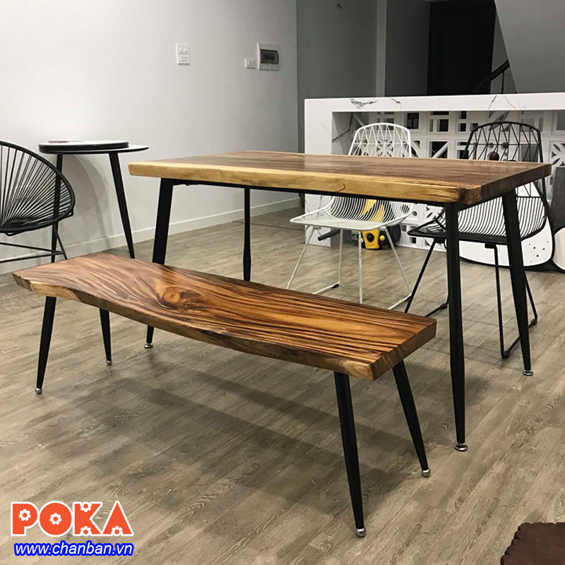 Ảnh 2: Ghế băng gỗ nguyên tấm sử dụng Chân iron Louis 40cm màu đen gắn bi inox.