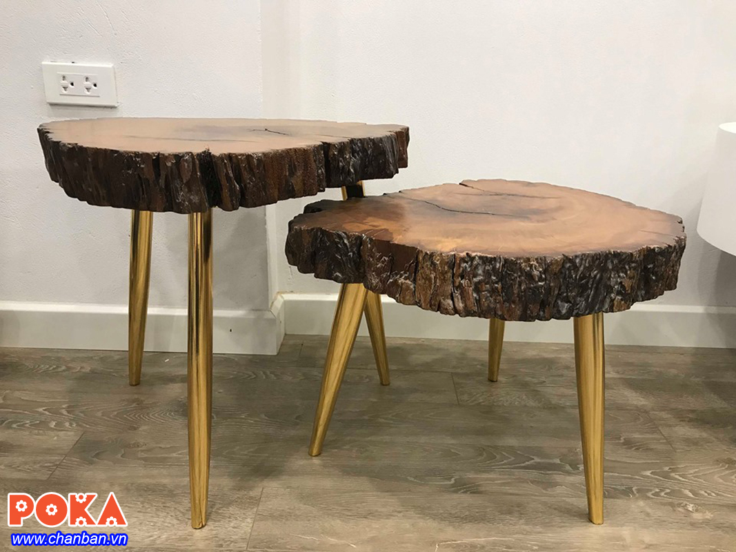 Ảnh 3: Bộ set bàn trà gỗ nguyên tấm được lắp bằng Chân bàn Louis Gold 30cm và 40cm màu vàng