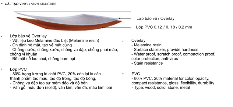 Một loại bề mặt nhựa tổng hợp đặc biệt được nhập khẩu từ Hàn Quốc với kết cấu bao gồm PVC và lớp bao phủ có độ dày theo tiêu chuẩn: 0,12mm / 0,18mm / 0,2 mm.
