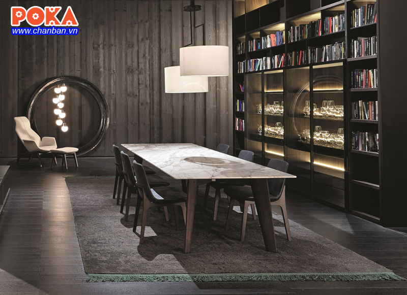 Hình 1: Bàn ăn Howard mặt đá vân mây nổi bật sang trọng trong không gian màu trầm
