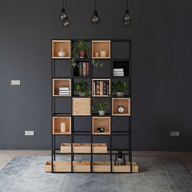 Kệ sắt trang trí những ô gỗ nhỏ trong lòng kệ với mục đích để đồ và trang trí. Với thiết kế theo phong cách hiện đại, phù hợp với không gian trẻ trung, thoáng đãng. Không chỉ dùng để trang trí và để đồ, kệ sắt còn có thể dùng vào việc làm đồ ngăn không gian trong phòng. Để tách phòng tiếp khách và phòng làm việc mà vẫn đảm bảo được thẩm mỹ và tác dụng ngăn phòng.