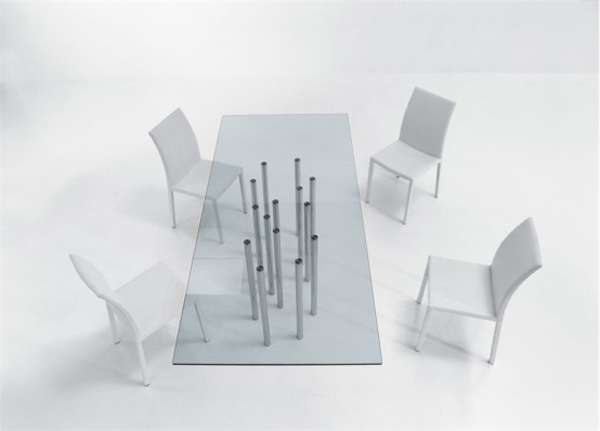 Với những loại bàn ăn bằng kính phong cách hiện đại sẽ giúp không gian trở nên rộng hơn. Chất liệu trong suốt và phản chiếu không kém phần tình tế dường như phù hợp trong mọi căn phòng từ kích thước lớn nhỏ đến khác nhau bởi cách bố trí. Một điều đáng lưu ý, kính rất dễ để lau chùi và không lưu bám chất bẩn lâu ngày.