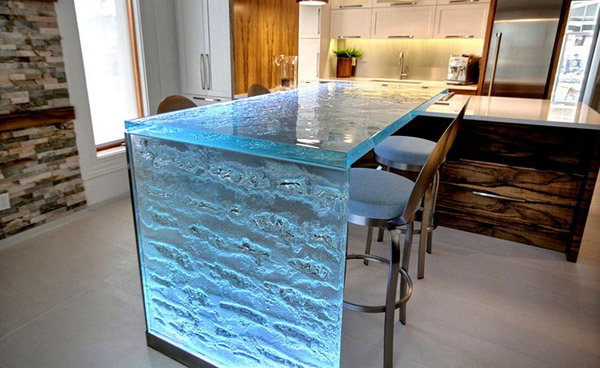 Mặt bàn gương gắn đèn led tạo hiệu ứng ánh sáng.