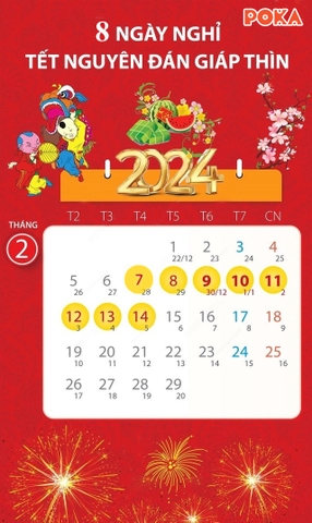 Thông báo: Lịch nghỉ Tết Nguyên Đán Giáp Thìn 2024 của Nội thất POKA