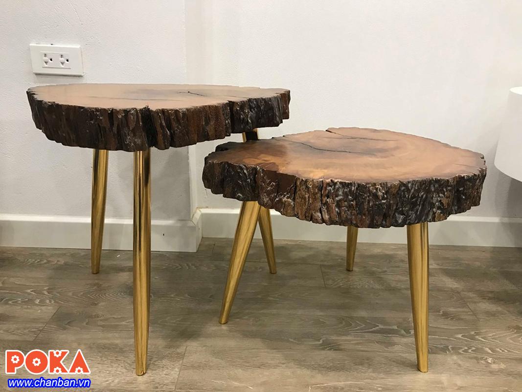 Ảnh 3: Chân bàn Louis 40cm màu vàng và chân bàn Louis 30cm mạ vàng kết hợp mặt gỗ tự nhiên